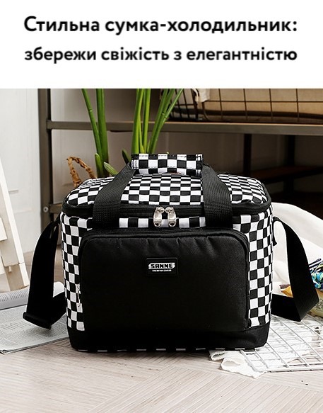Термосумка 13 літрів 30x21x21 см. Сумка-холодильник шаховий принт.