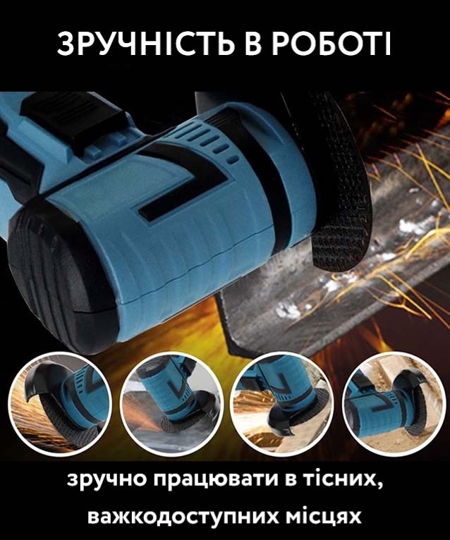 Болгарка на акумуляторі має високопродуктивний двигун забезпечує ефективну обробку різних матеріалів, таких як метал, дерево, та інші. Зручна рукоятка та вага інструменту зроблені так, щоб мінімізувати втому під час використання.