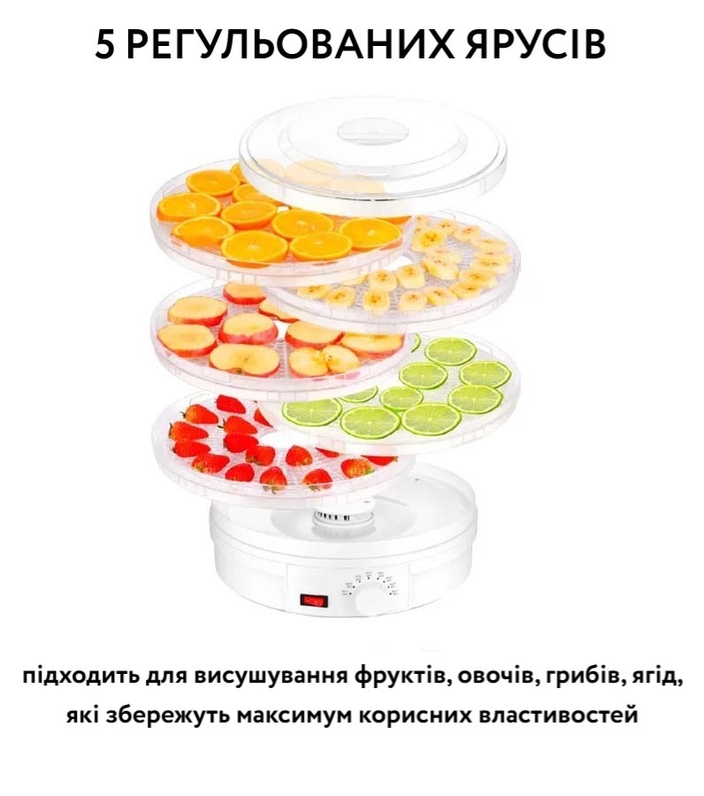Електрична сушарка для овочів та фруктів 5 ярусів