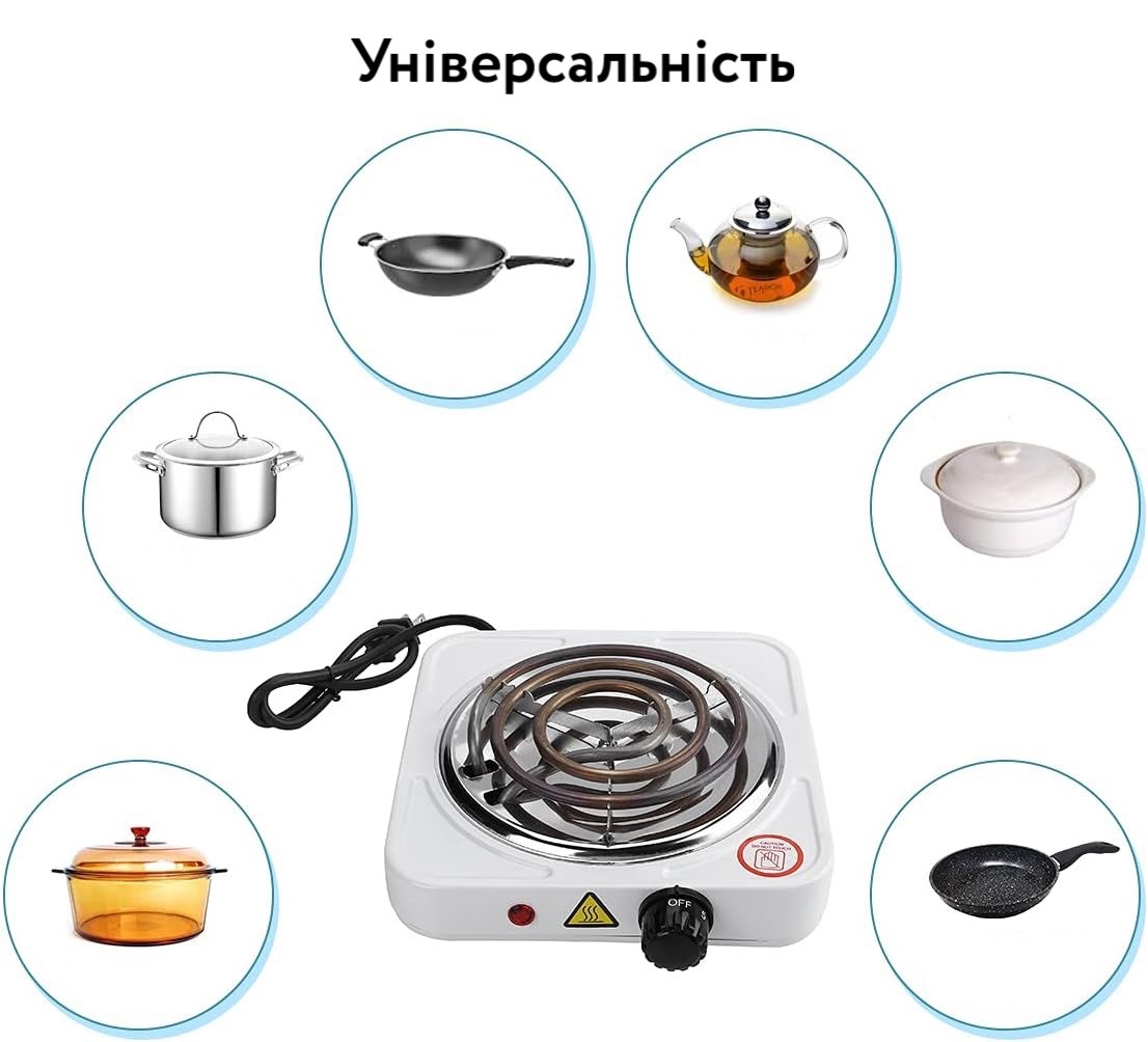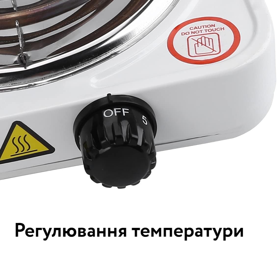 Швидке нагрівання. Плита має одну конфорку зі спіральним нагрівальним елементом, що дозволяє швидко нагріти робочу поверхню. Завдяки механічному перемикачу температурних режимів у вас є можливість самостійно регулювати потужність плити.
