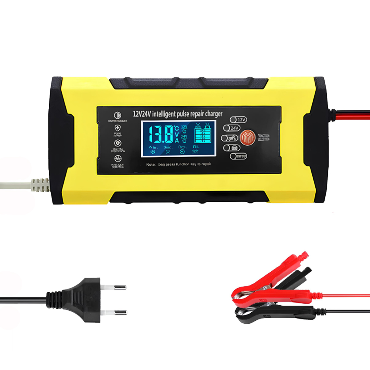 Підтримка двох режимів напруги — підходить для акумуляторів 12V та 24V, що робить пристрій універсальним для авто, мотоциклів, вантажівок, катерів тощо.