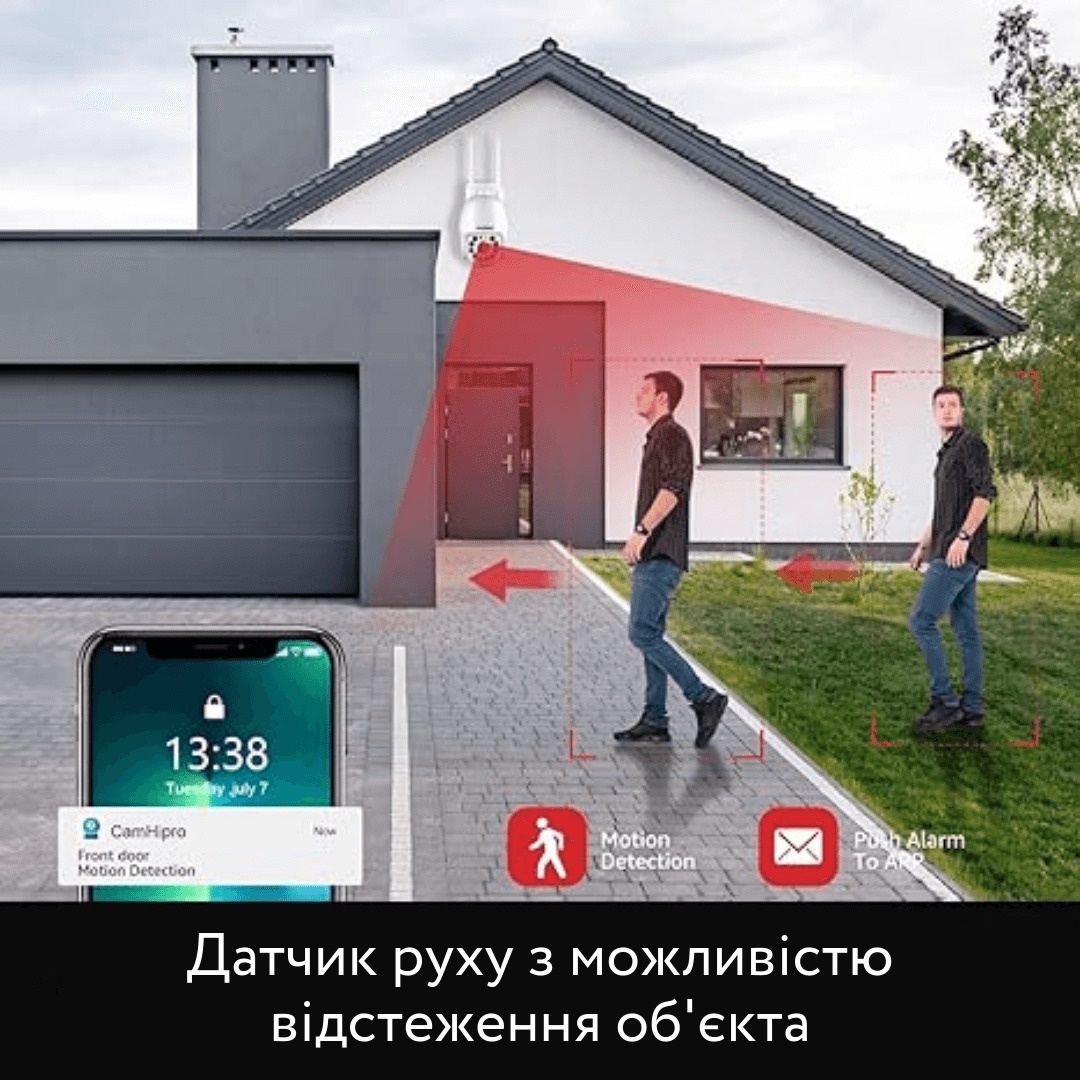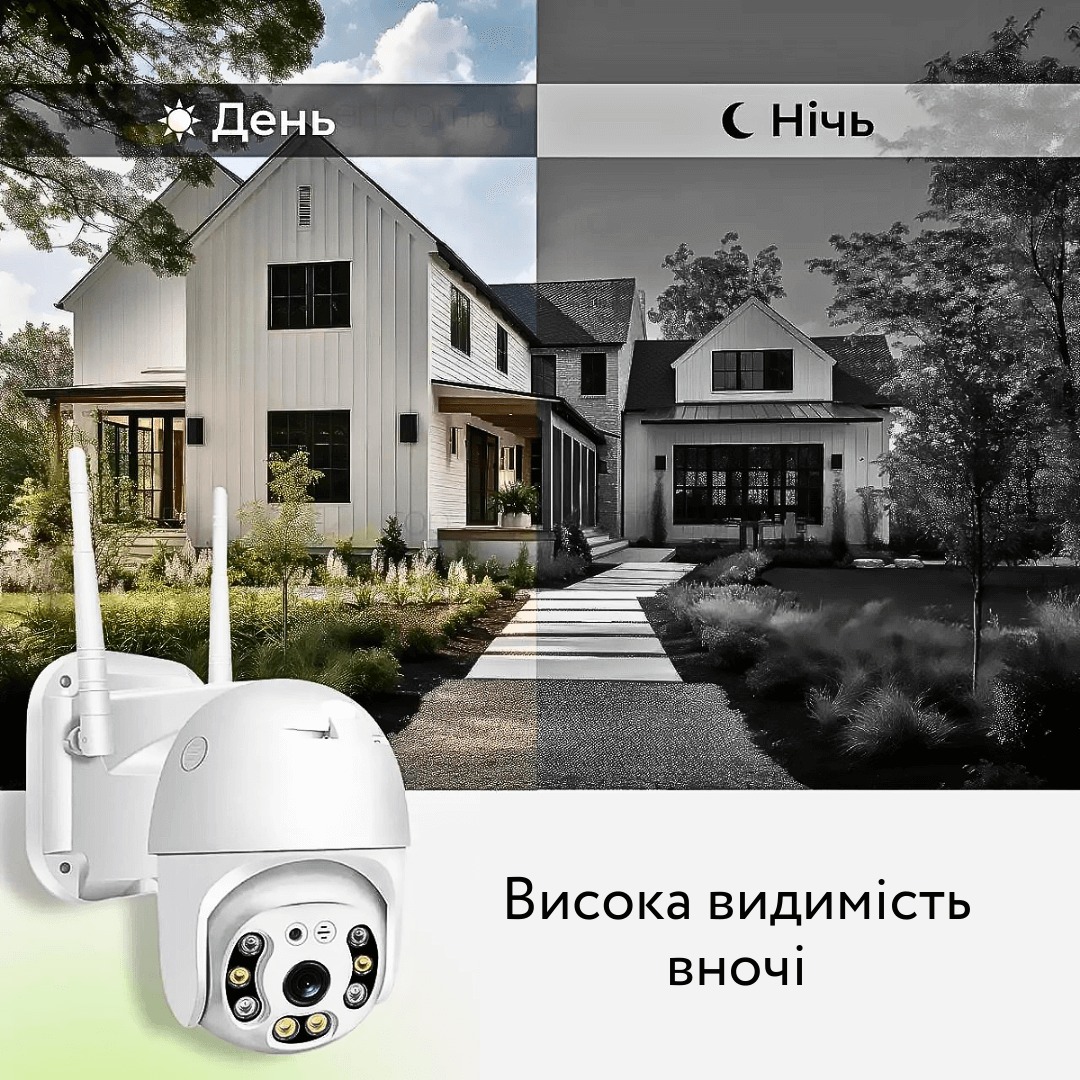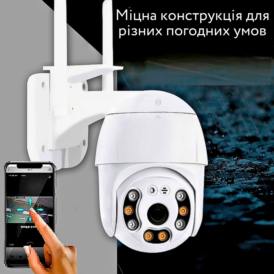 Камера оснащена потужним ІЧ-підсвічуванням, яке автоматично вмикається в умовах нічної темряви, забезпечуючи чітке відео навіть у повній темряві. Це дозволяє надійно контролювати об'єкт спостереження у час доби. Вологозахист робить її ідеальним вибором для встановлення на відкритому повітрі, забезпечуючи надійну роботу у дощову чи вітряну погоду.