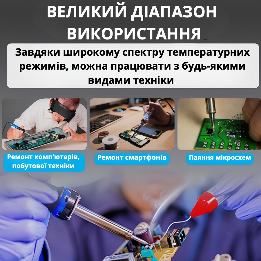 - Відсмоктувач для припою для ефективного видалення зайвого припою.