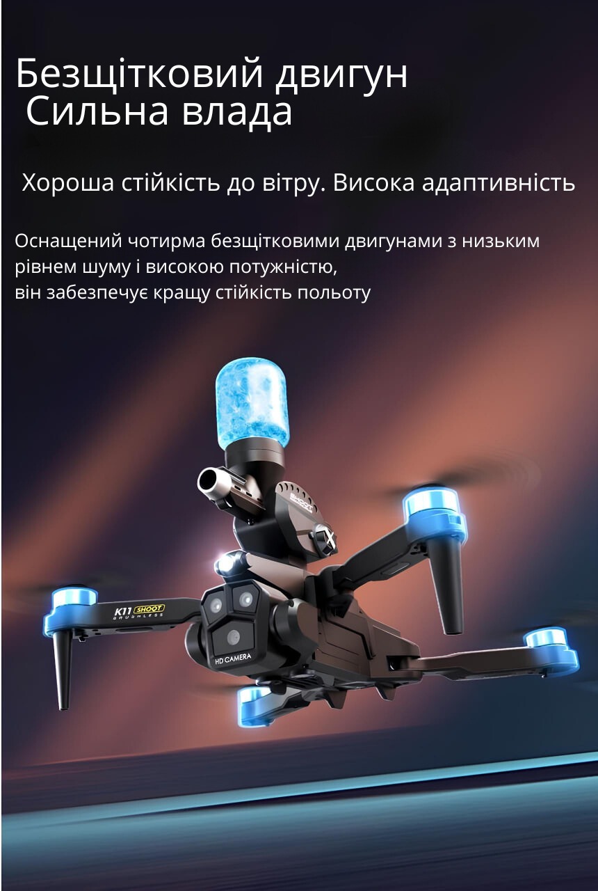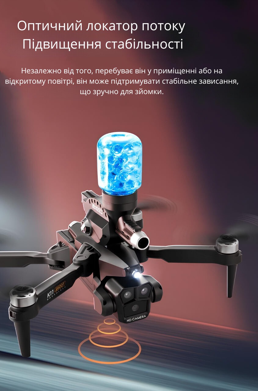 Міні-дрон K11 Max з кульками та трьома 4K-камерами — це інноваційний гаджет, що поєднує розвагу та сучасні технології. Компактний, стильний та зручний у використанні, цей квадрокоптер стане ідеальним вибором як для новачків, так і для досвідчених користувачів.