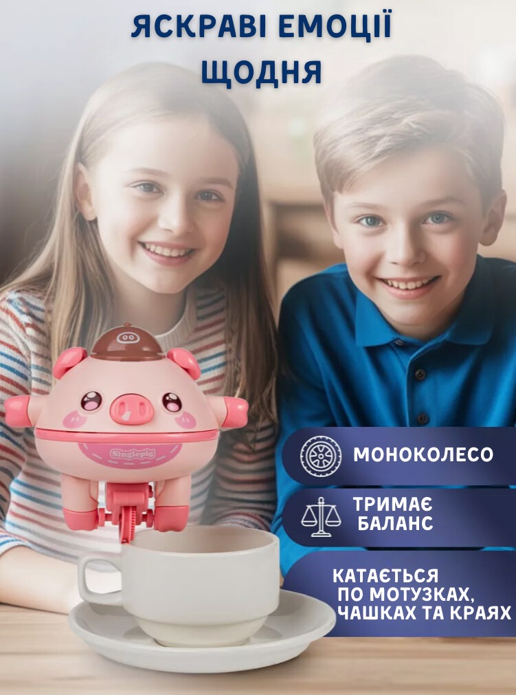Електронна іграшка-гіроскоп "Свинка Піггі" на одному колесі, що працює на батарейках.