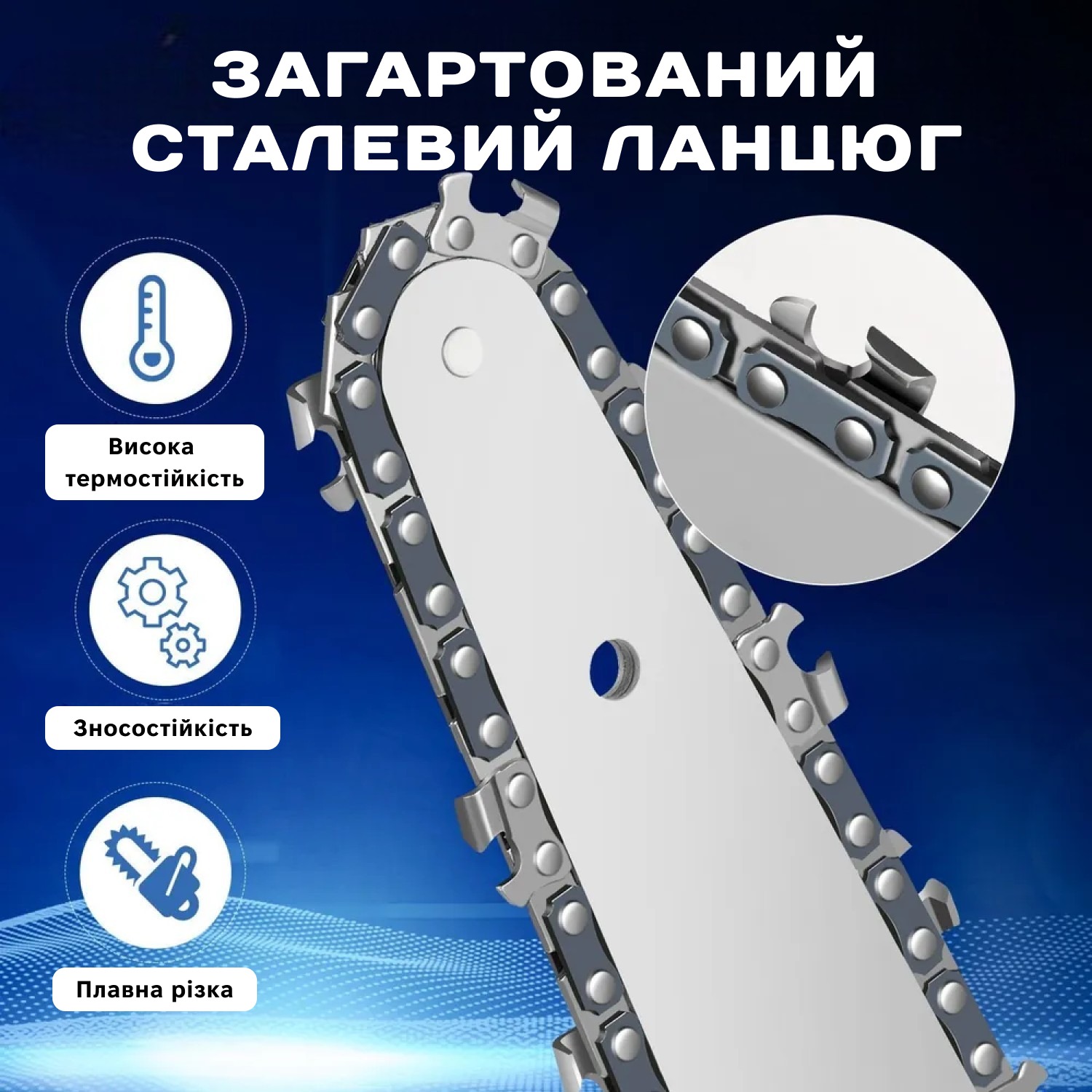 - Швидкість обертання ланцюга 10 м/сек