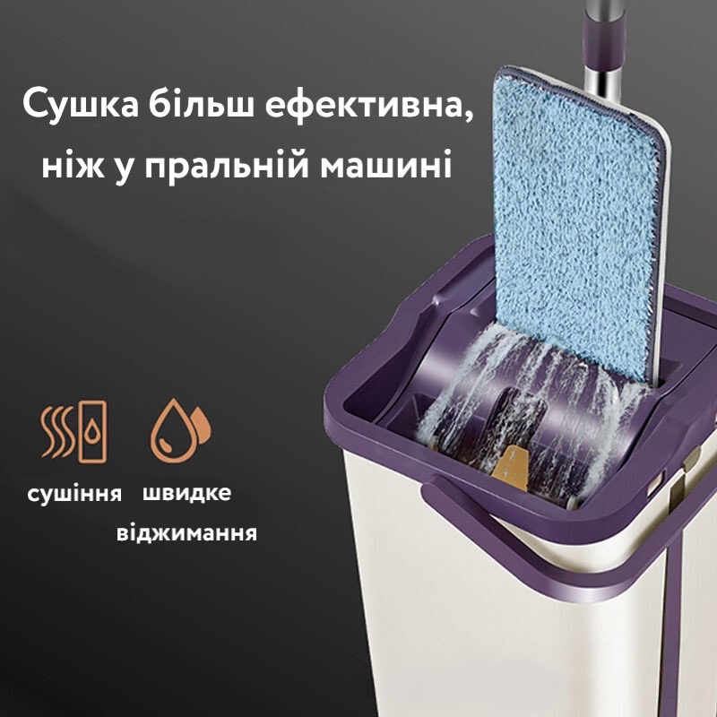 Відро оснащене системою полоскання та віджиму, що дозволяє повністю видаляти бруд із насадок;