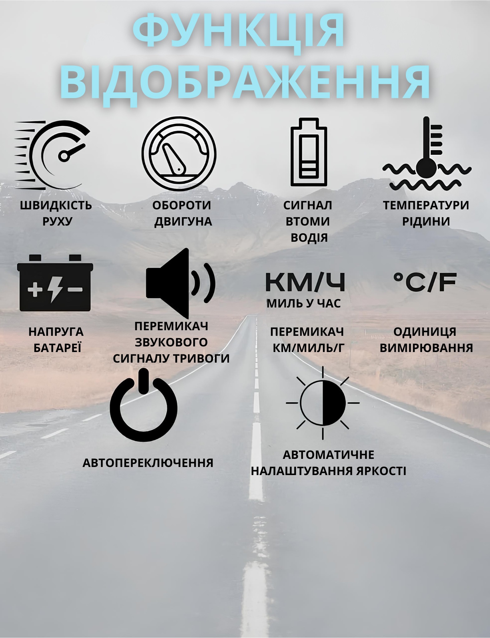 Інформація про автомобіль: рівень палива, температура двигуна, повідомлення про несправності.